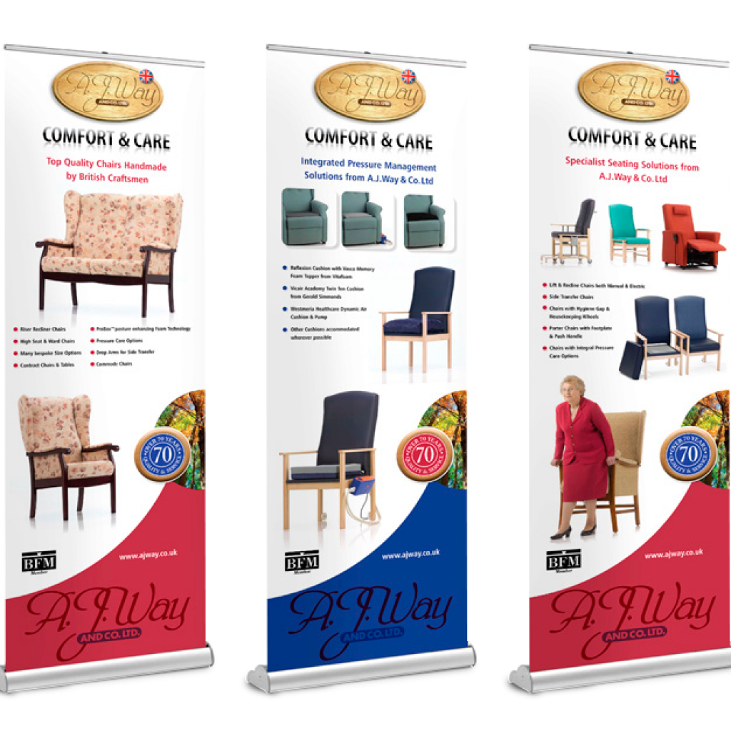 Roller banners offer a cost effective portable backdrop to your sales presentations.